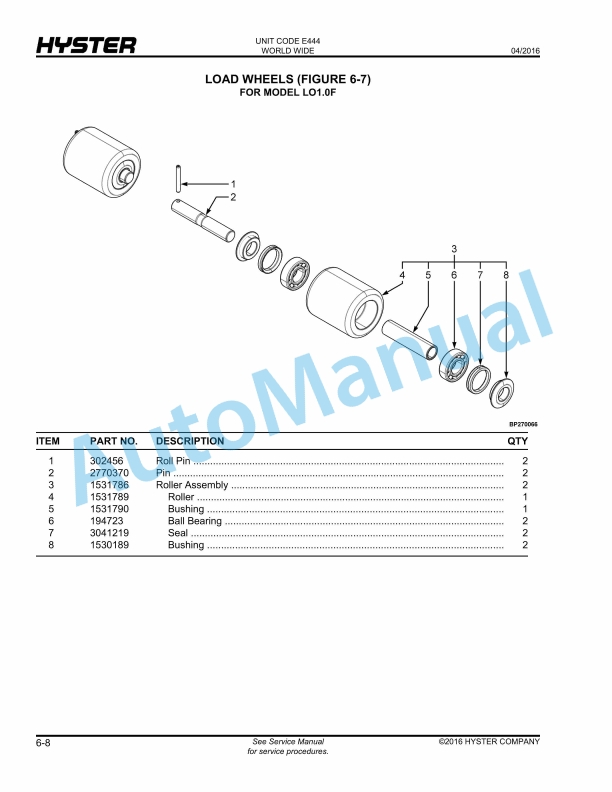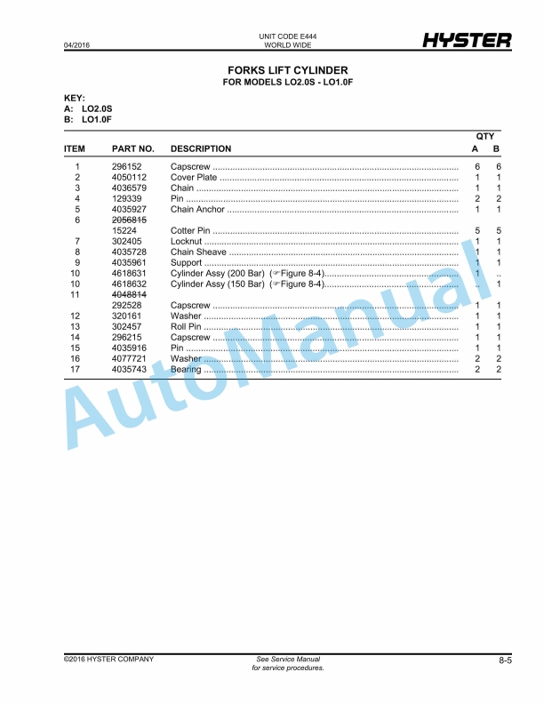 Hyster LO2.0-2.5, LO2.0S, LO1.0F, LO5.0T-7.0T (E444) Parts Manual