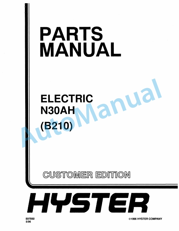 Hyster N30AH (B210) Electric Parts Manual