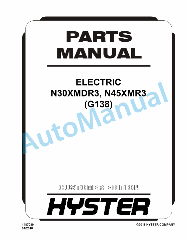 Hyster N30XMDR3, N45XMR3 (G138) Electric Parts Manual