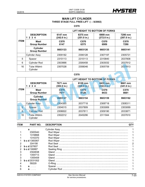 - 10.11. FREE-LIFT CYLINDER