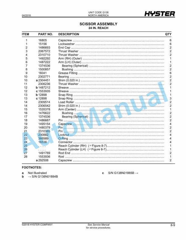 - 11.9. REACH CYLINDER 42 IN. REACH (S/N G138N01921B )