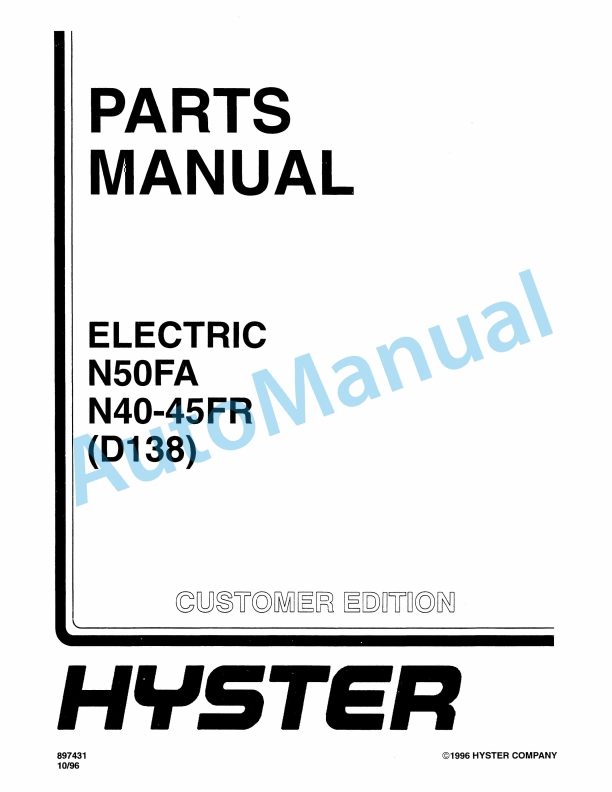 Hyster N50FA, N40-45FR (D138) Electric Parts Manual