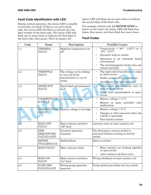 • 1.3.2.2. Fault Codes and Troubleshooting Procedure for the Controller