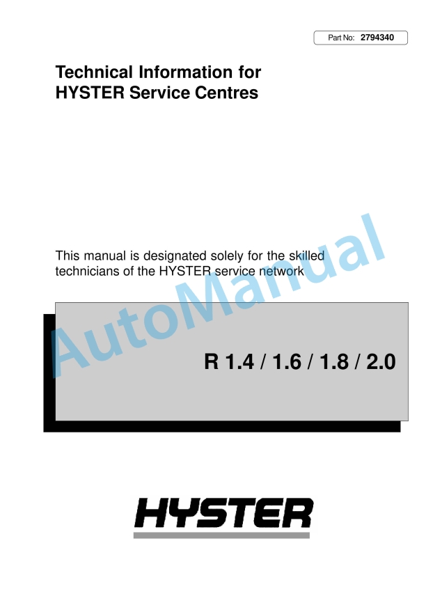 Hyster R1.4, R1.6, R1.8, R2.0 Service Manual