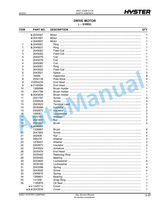 Hyster R30XM2, R30XMA2, R30XMF2 (G118) Electric Parts Manual