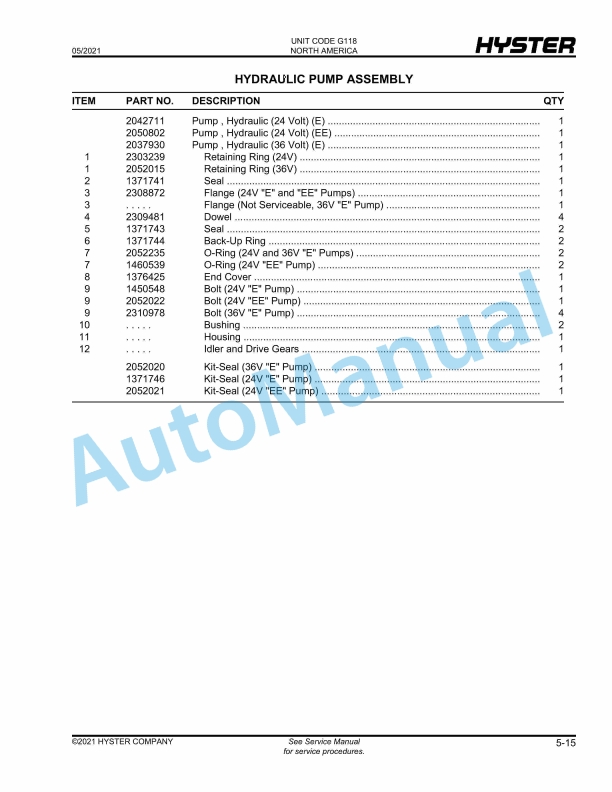 - 16.5. HYDRAULIC PUMP ASSEMBLY