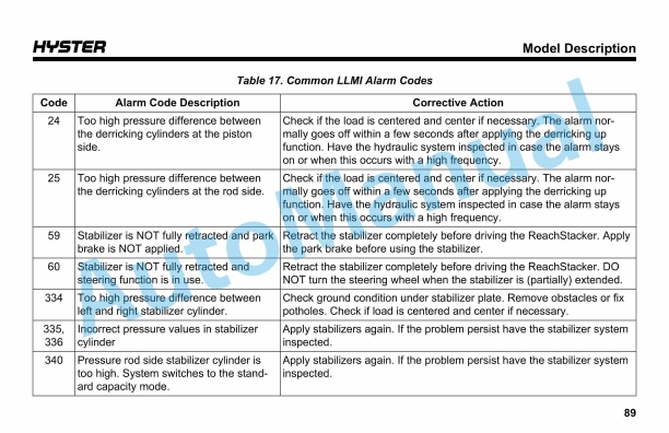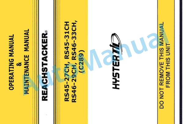 Hyster RS45-27CH, RS45-31CH, RS46-29CH, RS46-33CH (C289) Reachstacker Operation And Maintenance Manual