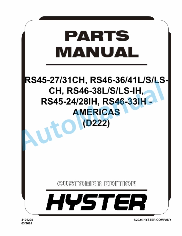 Hyster RS45-27CH to RS46-33IH Americas (D222) Parts Manual