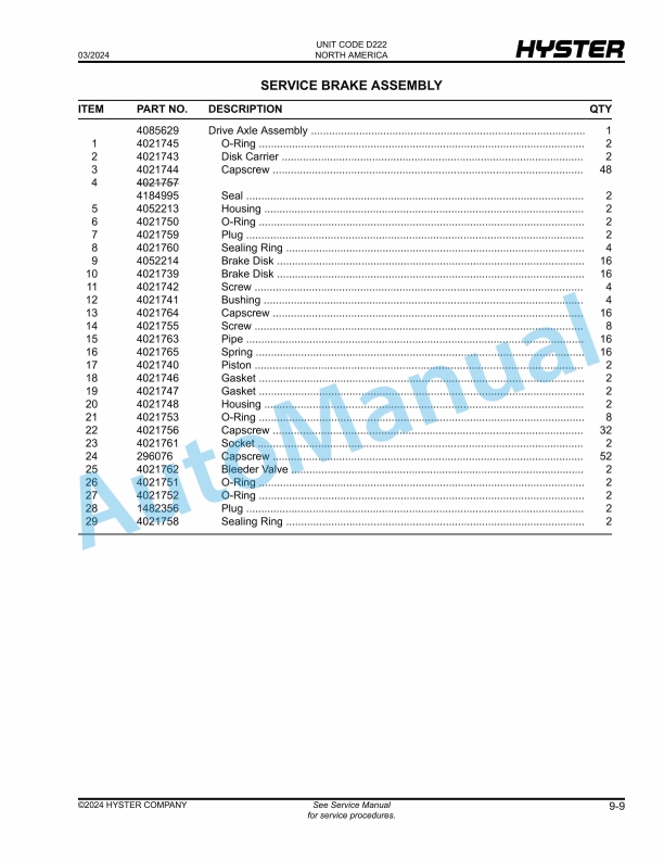 Hyster RS45-27CH to RS46-33IH Americas (D222) Parts Manual - Image 2