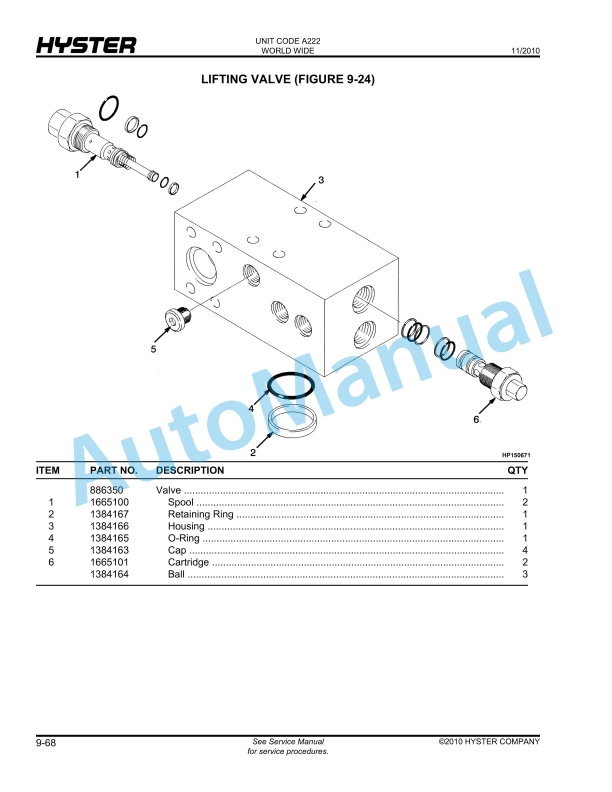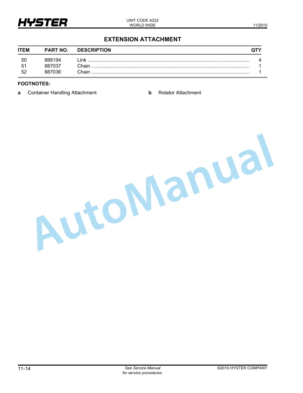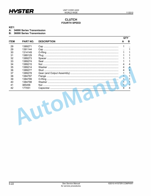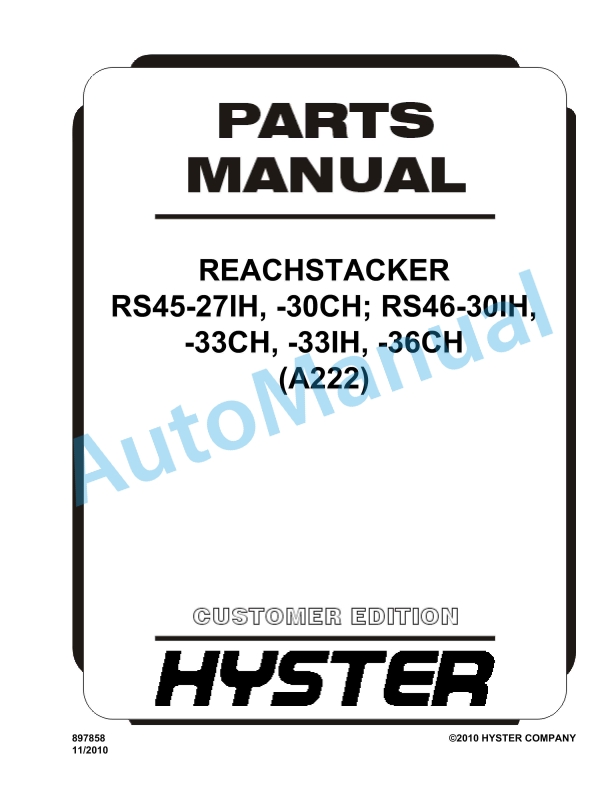 Hyster RS45-27IH, RS45-30CH, RS46-30IH, RS46-33CH, RS46-33IH, RS46-36CH (A222) Reachstacker Parts Manual