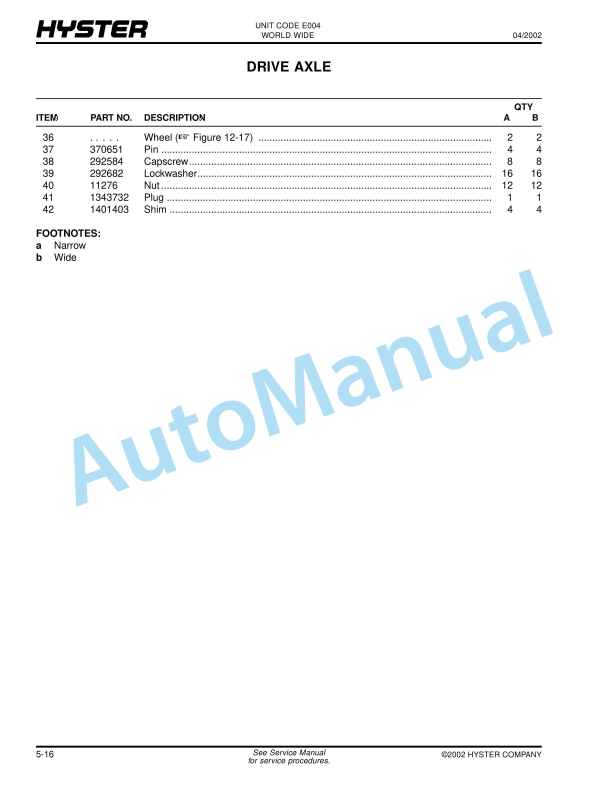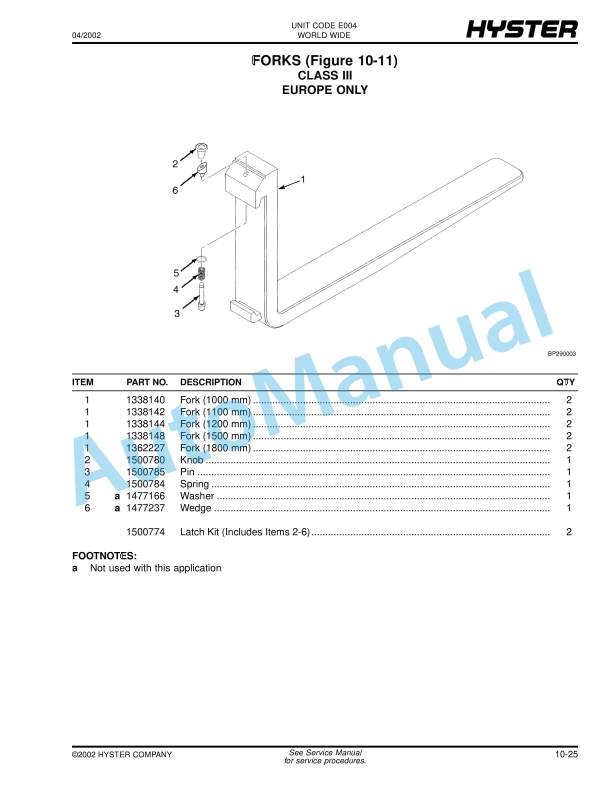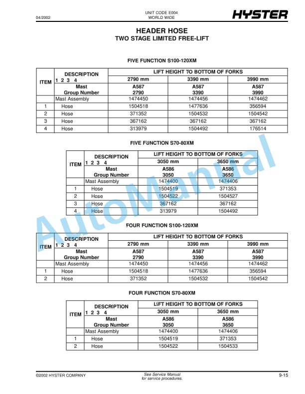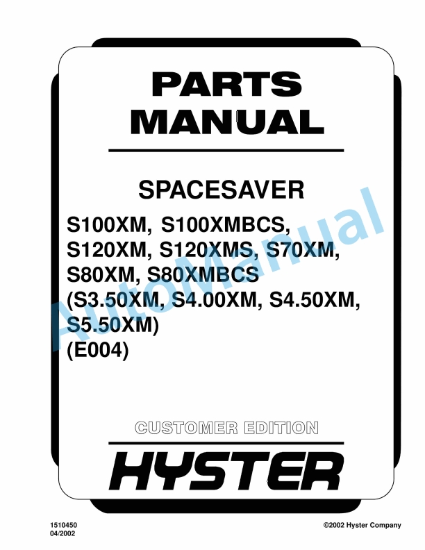 Hyster S100XM, S100XMBCS, S120XM, S120XMS, S70XM, S80XM, S80XMBCS (E004) Spacesaver Parts Manual