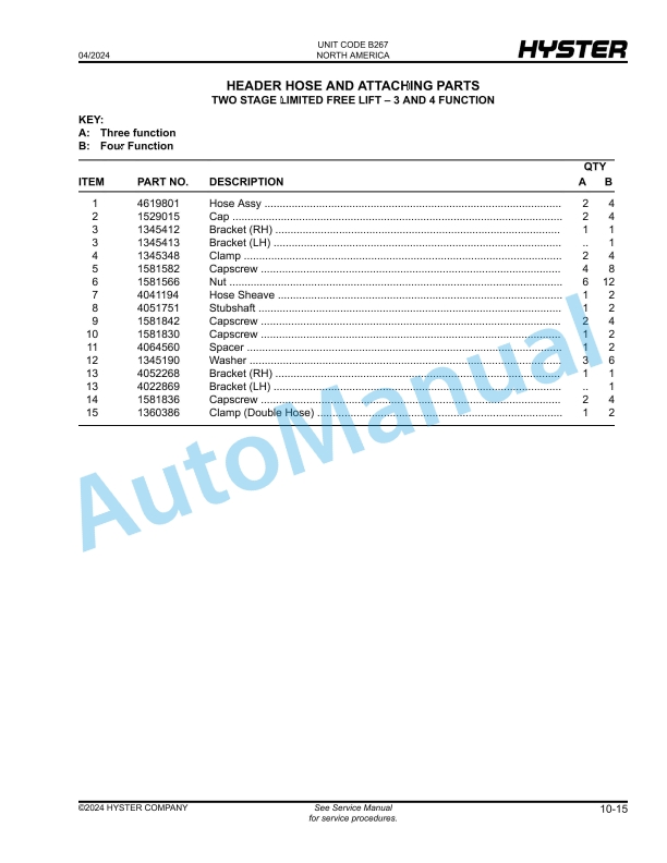- 23.6. HEADER HOSE AND ATTACHING PARTS TWO STAGE LIMITED FREE LIFT – 3 AND 4 FUNCTION