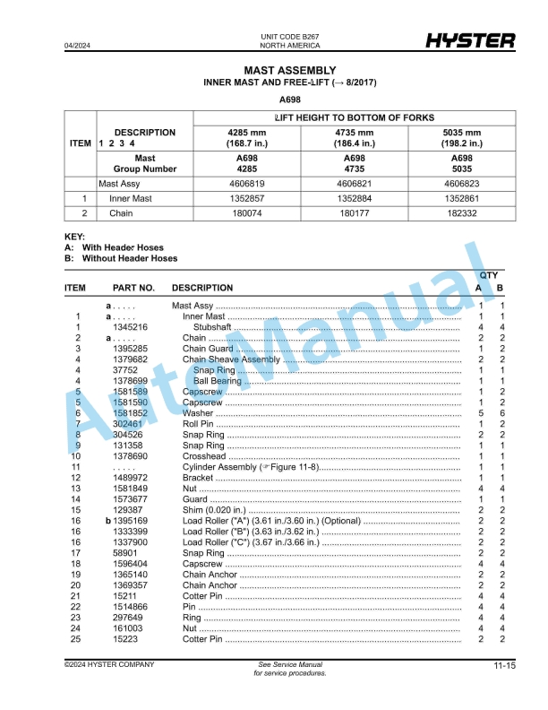 - 24.4. MAST ASSEMBLY INTERMEDIATE MAST AND MAIN LIFT (8/2017 )