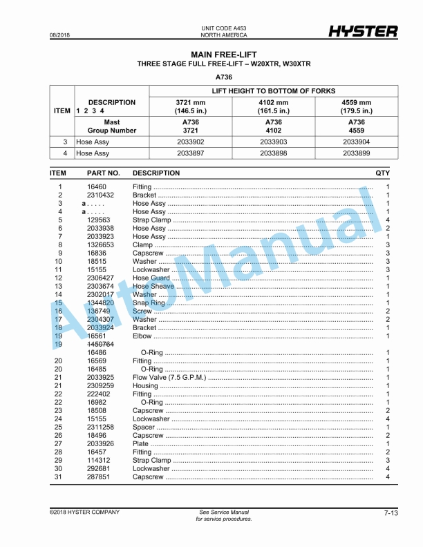 Hyster W20XTA, W30XTA, W40XTA (A453), W20XTR, W30XTR (A455) Walkie High Lift Straddle Parts Manual - Image 3