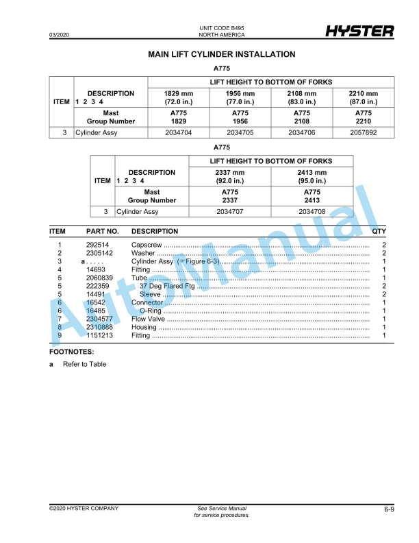 - 6.4. MAIN LIFT CYLINDER INSTALLATION