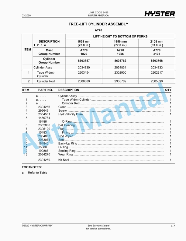 - 7.3. FREE-LIFT CYLINDER ASSEMBLY