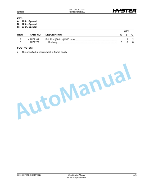 - 4.2. FORK AND FRAME WELDMENT WITHOUT LOAD BACKREST (S/N D215N02288H )