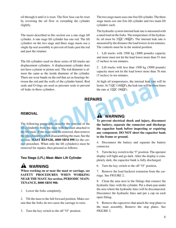 - 42.2.1.1. Two Stage (LFL) Mast-Main Lift Cylinder