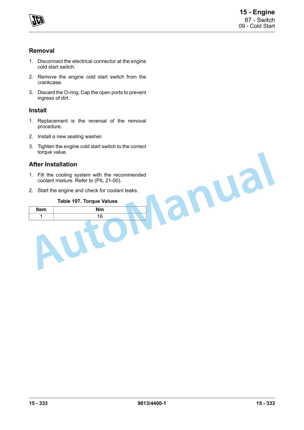 JCB 225, 225T, 260, 260T, 280, 300, 300T, 320T, 325T, 330 Skidsteer Loader Service Manual 9813-5150