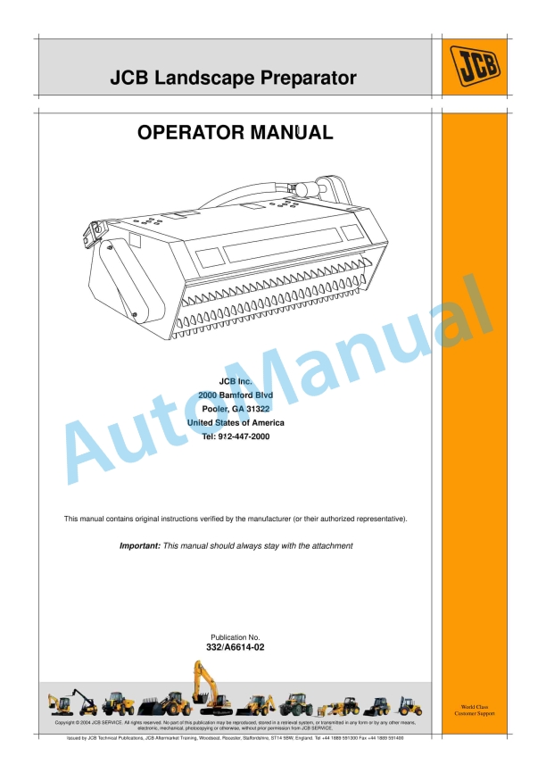 JCB 2000 Bamford Blvd Pooler, GA 31322 Operator Manual 332-A6614-02