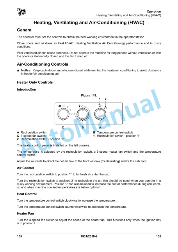 JCB 135, 150T, 155, 175, 190, 190T, 205, 205T Operator Manual 9811-9500