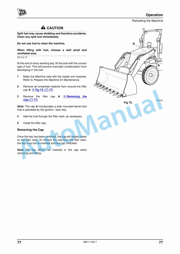 JCB 2DX, 2DXL Backhoe Loader Operator Manual 9831-1100-7