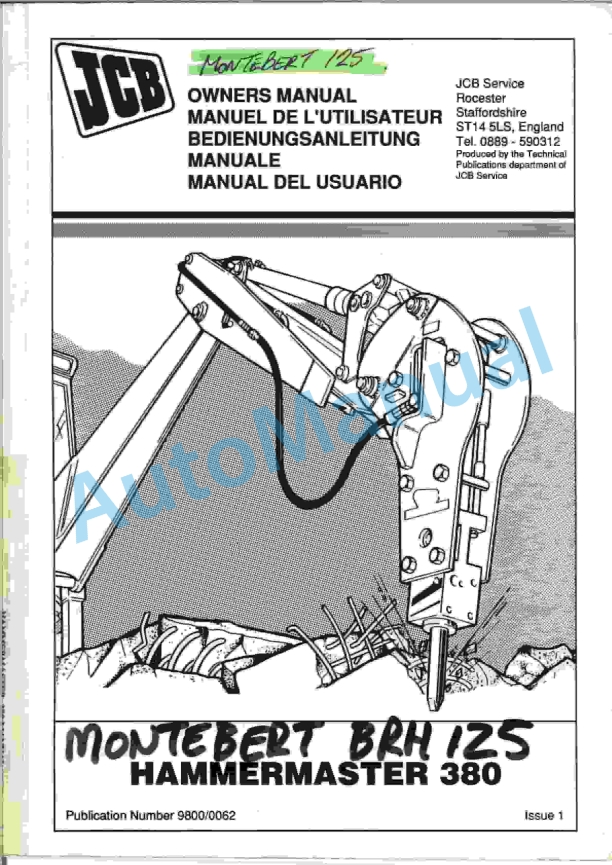 JCB 380 Hammermaster Owners Manual 9800-0062