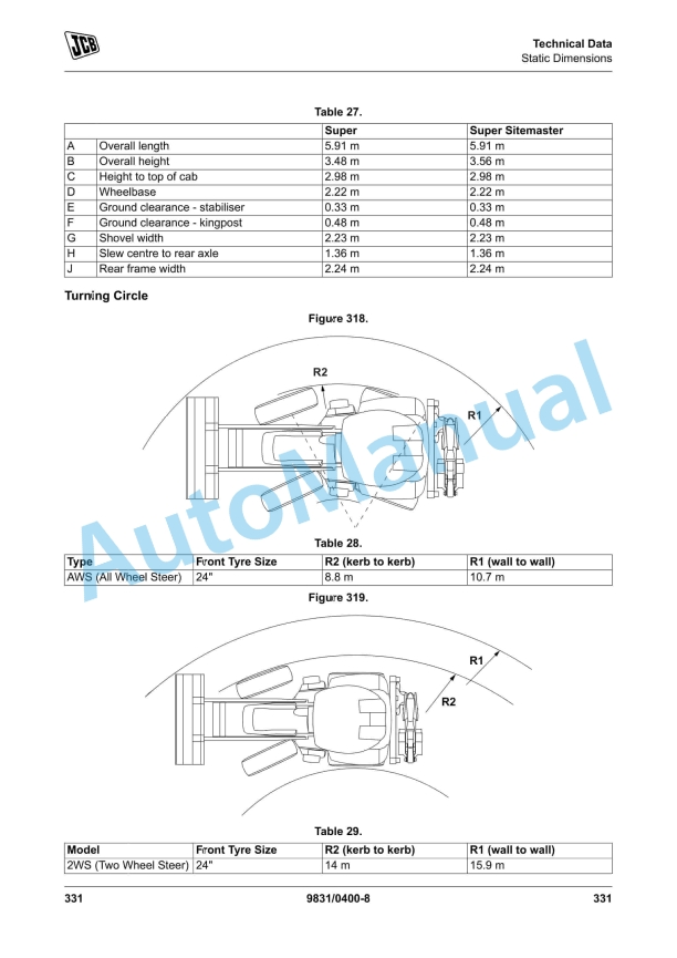 JCB 3CX, 4CX, 5CX Backhoe Loader Operator Manual 9831-0400