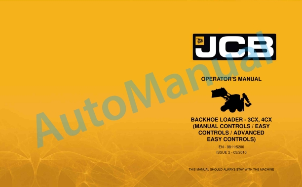 JCB 3CX, 4CX Backhoe Loader Operator Manual 9811-5200