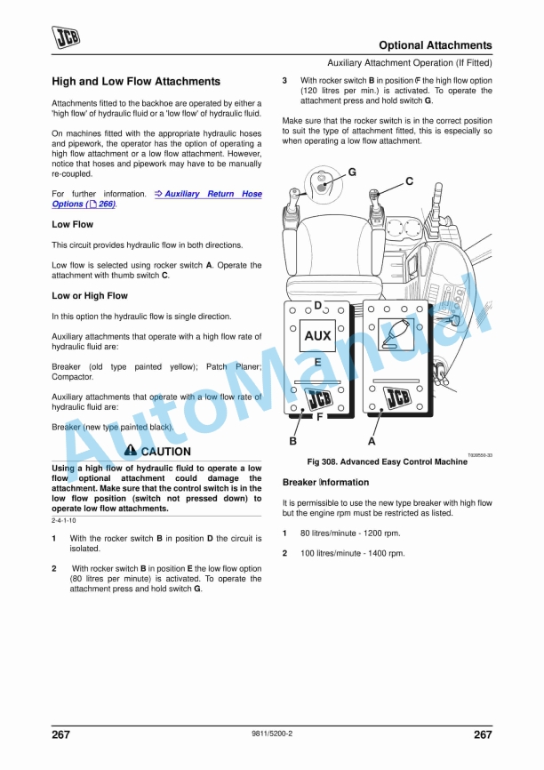 • 236. Auxiliary Attachment Operation (If Fitted) …………………………………………..266