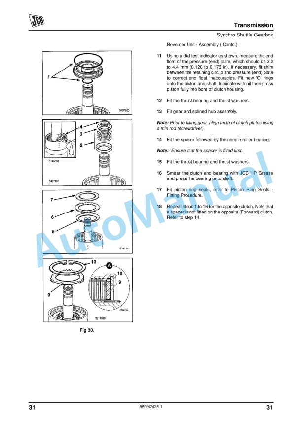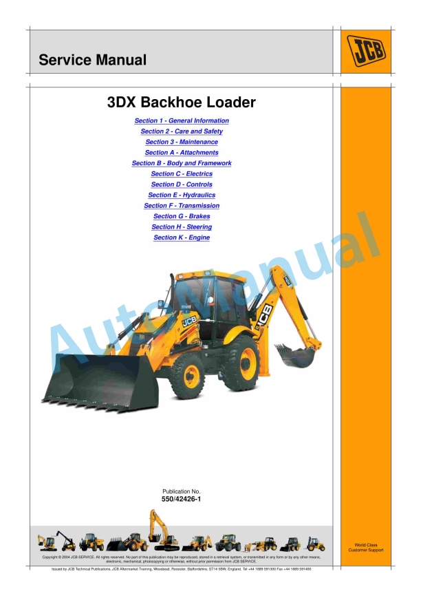 JCB 3DX Backhoe Loader Service Manual 550-42426-1