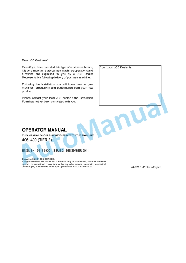 JCB 406, 409 (Tier 3) Operator Manual 9811-6900