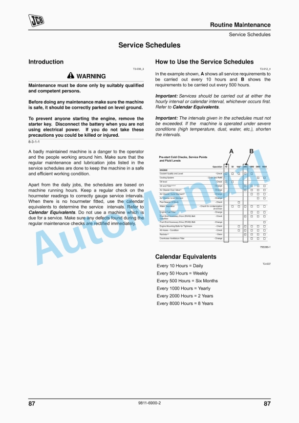 JCB 1050, 1050Q, 1350, 1350Q, 1750, 1350, 2350Q, 2950, 2950Q, 3850, 3850Q Owners Manual 9801-0083