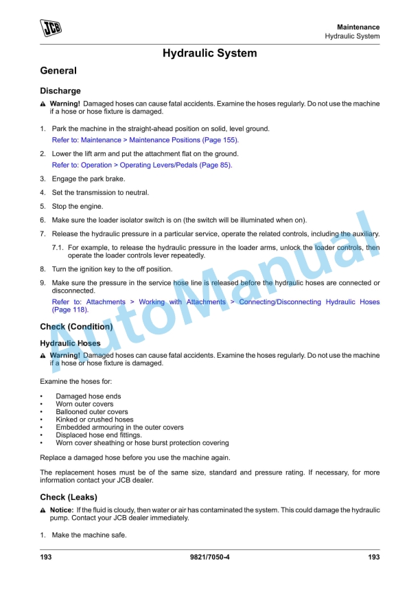 - 167. Connecting-Disconnecting Hydraulic Hoses …………………………………………………………………………. 118