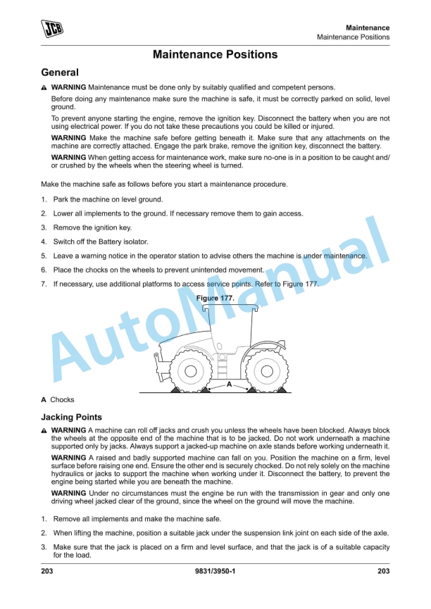 JCB 135, 150T, 155, 175, 190, 190T, 205, 205T Operator Manual 9811-9500