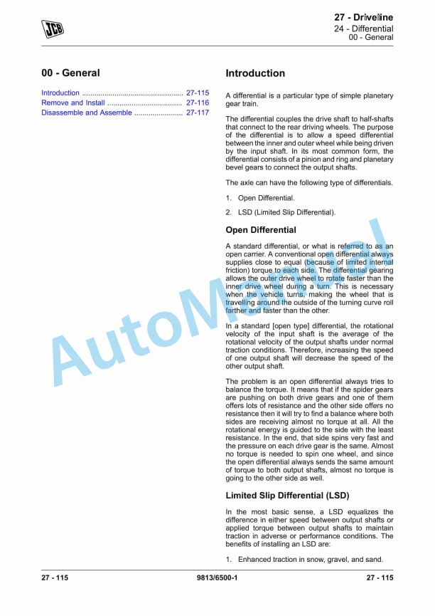JCB 225, 225T, 260, 260T, 280, 300, 300T, 320T, 330 Service Manual 9813-2300
