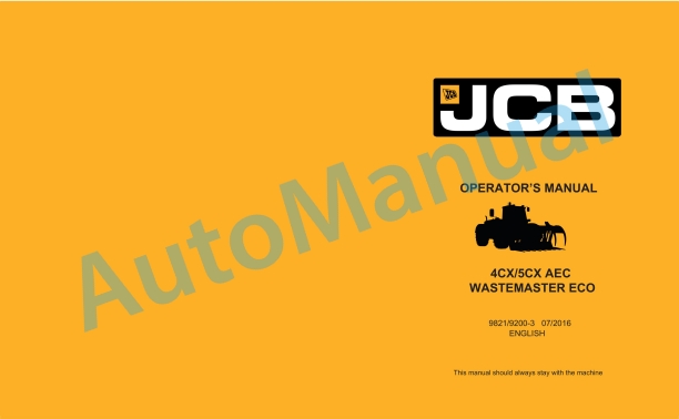 JCB 4CX, 5CX AEC Wastemaster ECO Operator Manual 9831-2200-2