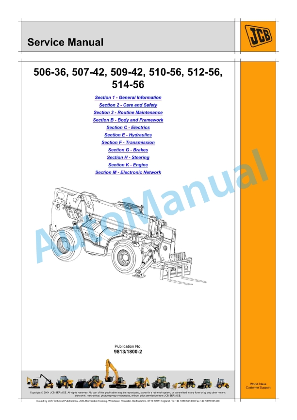 JCB 506-36, 507-42, 509-42, 510-56, 512-56, 514-56 Service Manual 9813-1800