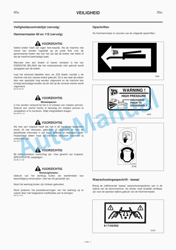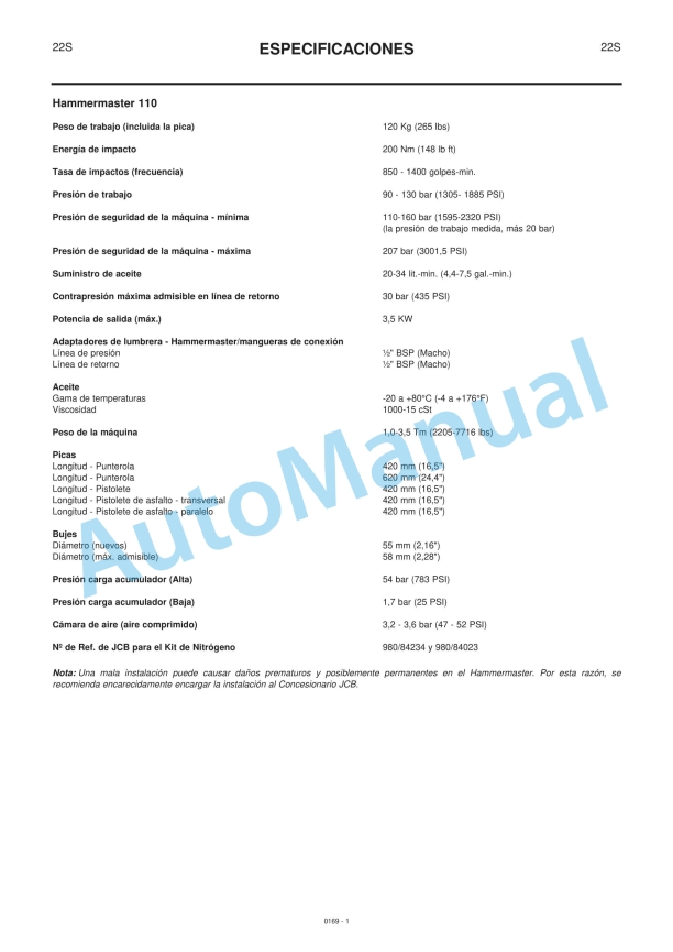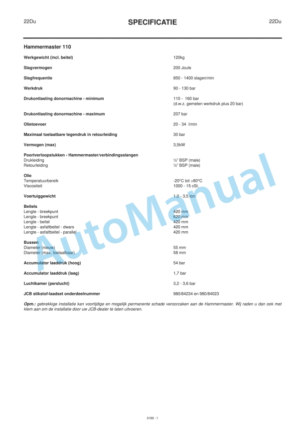 JCB 60, 110 Hammermaster Owner Manual 9801-0169