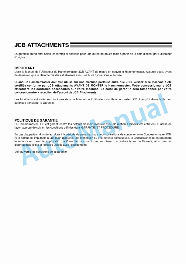 JCB 160, 260, 360, 550, 850 Hammermaster Operator ManualAlternative view of JCB 160, 260, 360, 550, 850 Hammermaster Operator Manual