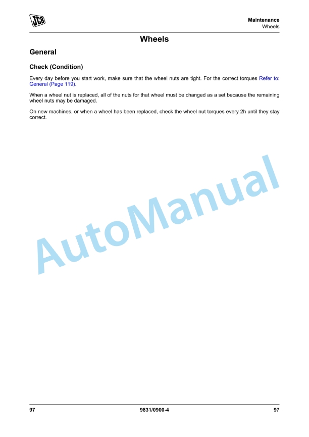 JCB 1050, 1050Q, 1350, 1350Q, 1750, 1350, 2350Q, 2950, 2950Q, 3850, 3850Q Owners Manual 9801-0083
