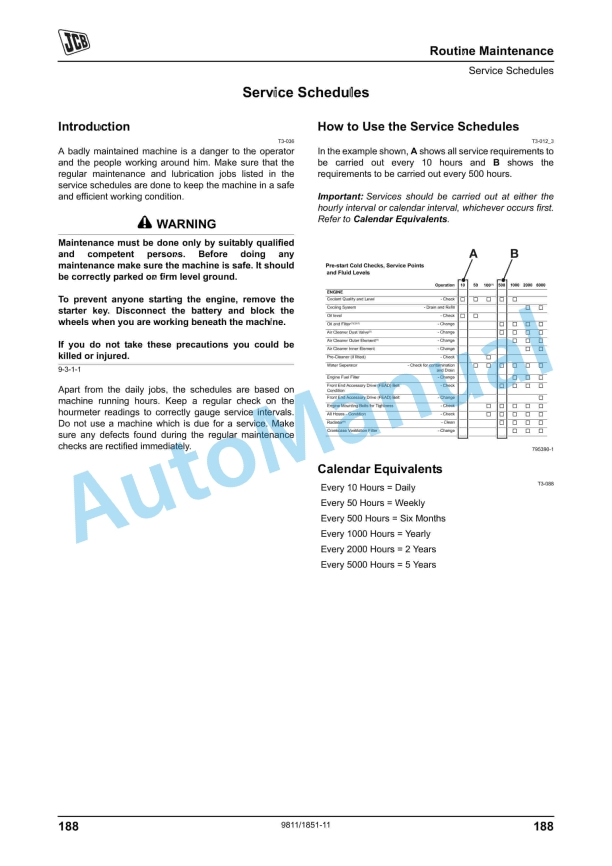 JCB 1050, 1050Q, 1350, 1350Q, 1750, 1350, 2350Q, 2950, 2950Q, 3850, 3850Q Owners Manual 9801-0083
