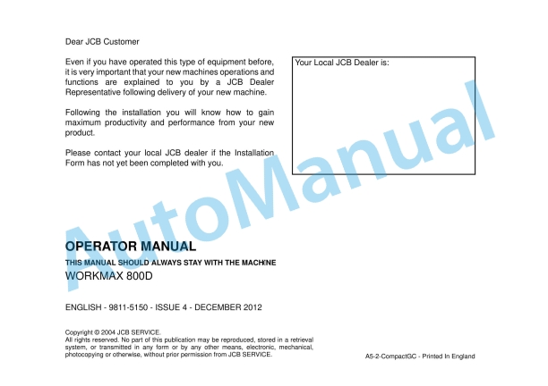 JCB 800D Workmax Operator Manual 9811-5150