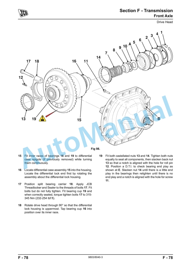 JCB 8250 Fastrac Service Manual 9803-8070Alternative view of JCB 8250 Fastrac Service Manual 9803-8070