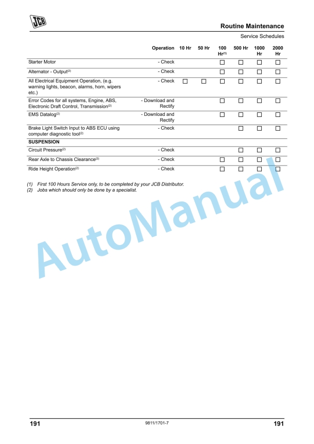 JCB 8250 Operator Manual 9811-1701 - Image 2