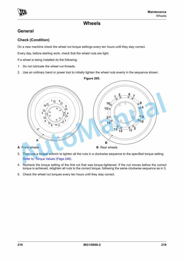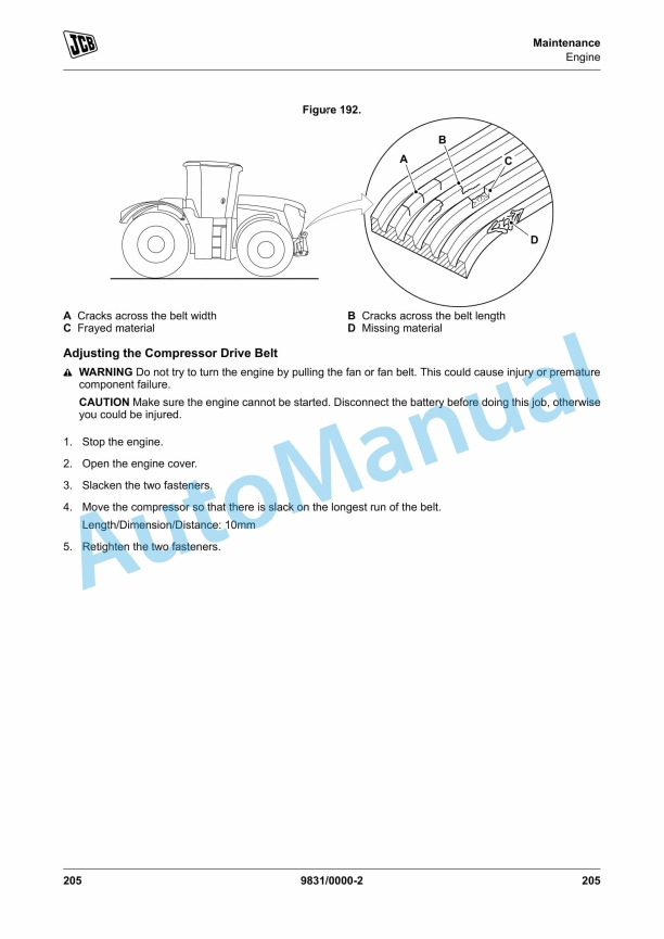 JCB 135, 150T, 155, 175, 190, 190T, 205, 205T Operator Manual 9811-9500