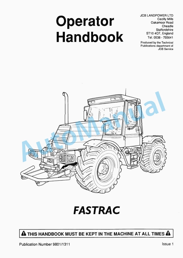 JCB Fastrac Operator Handbook 9801-1311