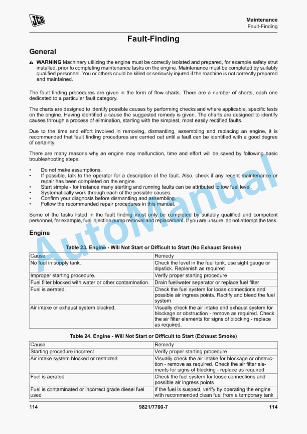 JCB G115 to G91QS Operator Manual 9821-7700