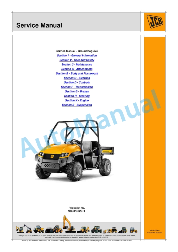 JCB 8250 Fastrac Service Manual 9803-8040Alternative view of JCB 8250 Fastrac Service Manual 9803-8040