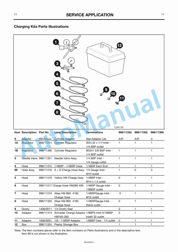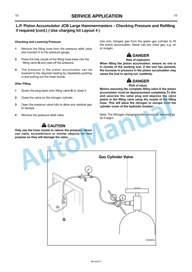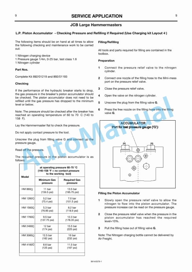 JCB Hammermaster Accumulators Gas Charging Kits Owners Manual 9814-0579